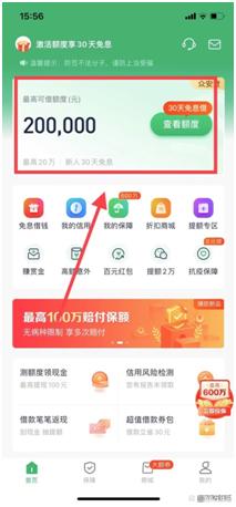 4、登录好以后返回首页点击查看额度。